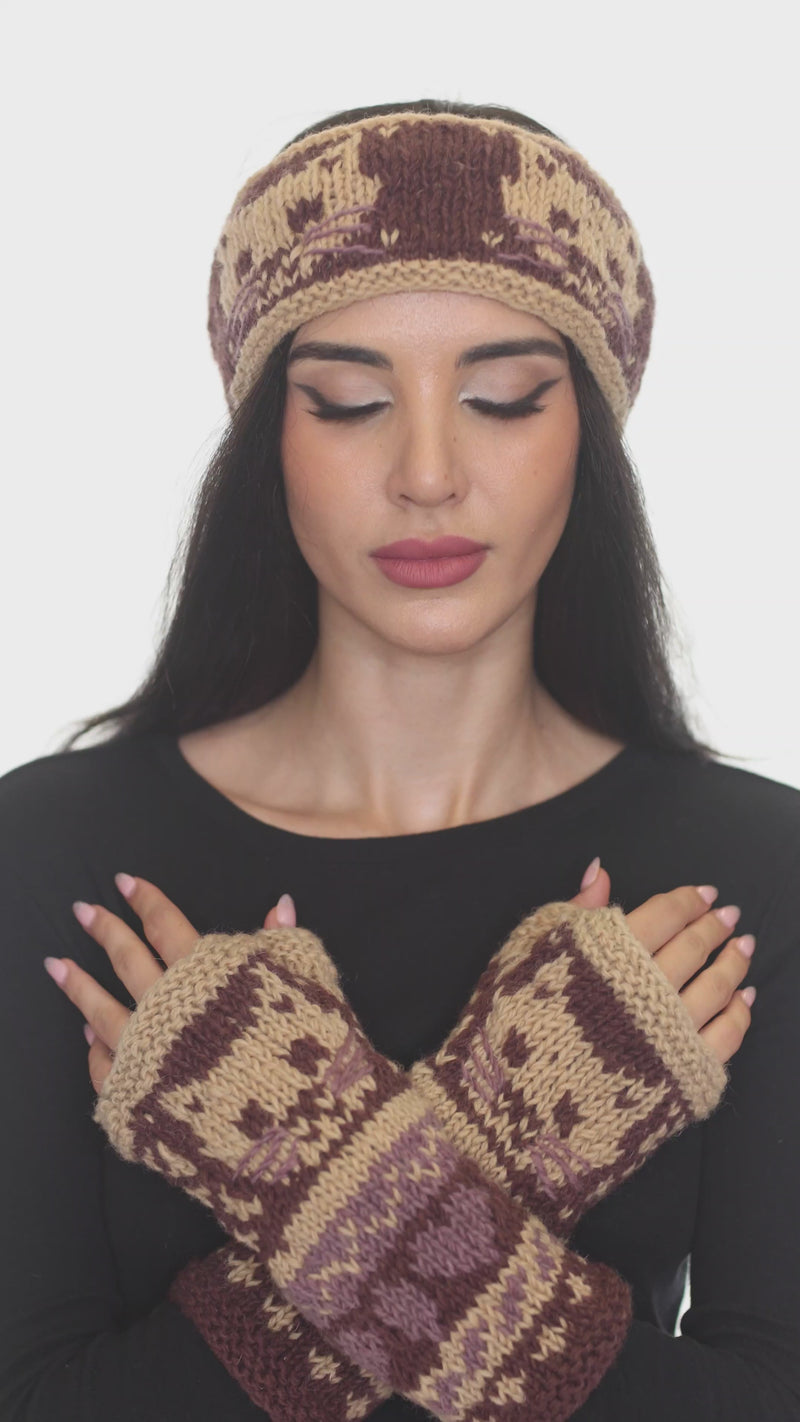 Stay warm with a purr-fect touch of charm! The Kitty Knit Headband features adorable cat silhouettes and cozy wool construction, making it a playful yet practical winter accessory. Fully fleece-lined for extra softness, this hand-knit headband keeps your ears toasty while adding a fun, feline flair to your cold-weather style.