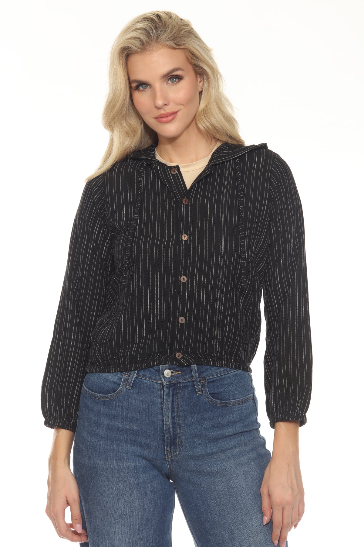 The Celestial Embroidered Bomber Hoodie is a standout piece featuring a bold sun and moon embroidery on the back. Designed with a relaxed bomber silhouette, front buttons, and a functional hoodie, it blends cozy cotton comfort with celestial charm. Available in earthy Sand or classic Black, it’s the perfect layer to make a statement on cool days.
