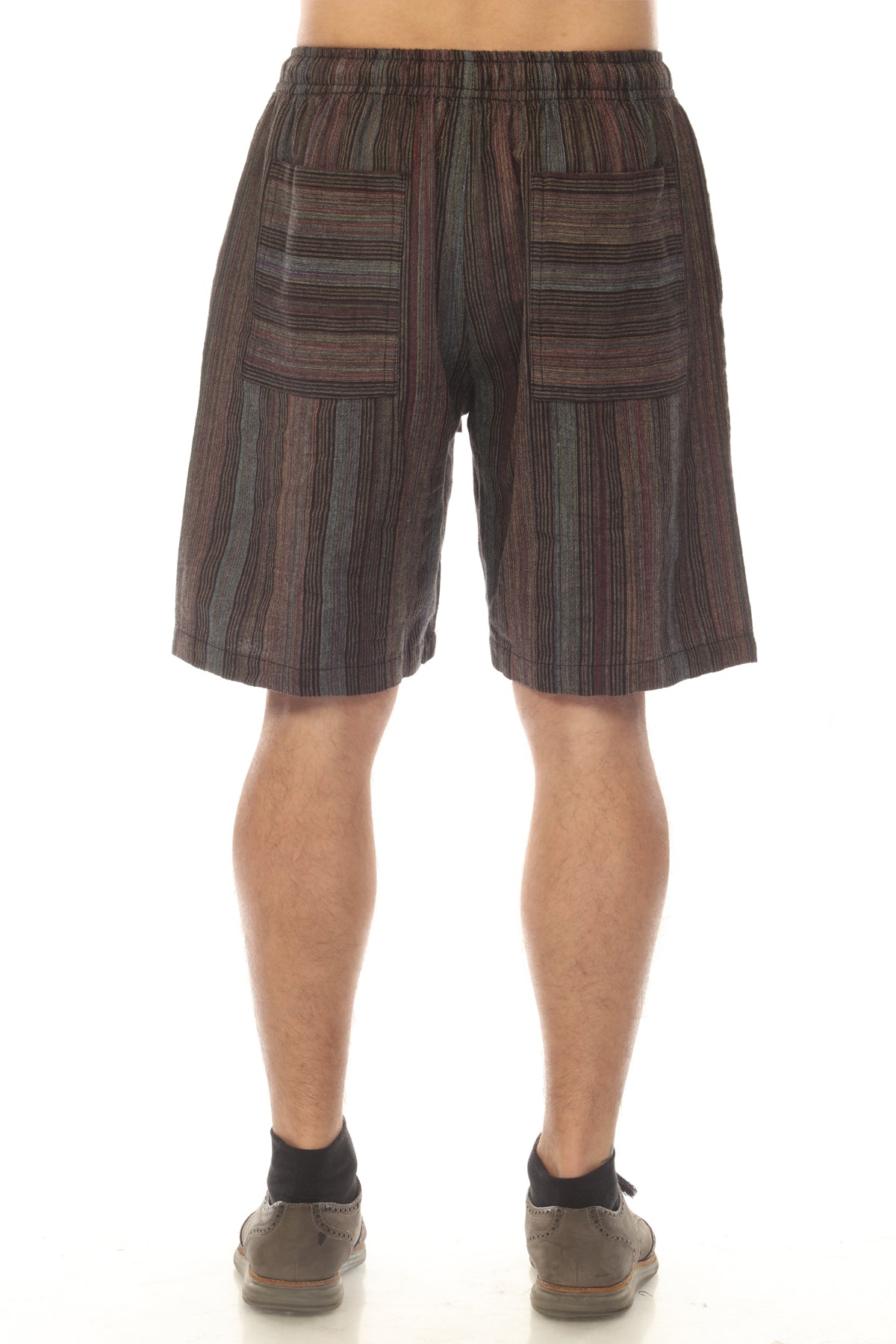 Upgrade your style with our Yarn Dye Stripe Mens Cotton Shorts! Crafted from a breathable cotton woven fabric, these unisex shorts feature a stylish stripe pattern, a patchwork detail and an elastic drawstring waist for a comfortable fit. The long length reaches just above the knee and has a hippie, beachy vibe that's perfect for both outdoor and casual occasions. Whether your look is fun and multicolored or subdued and neutral, these lightweight shorts are sure to get you noticed!