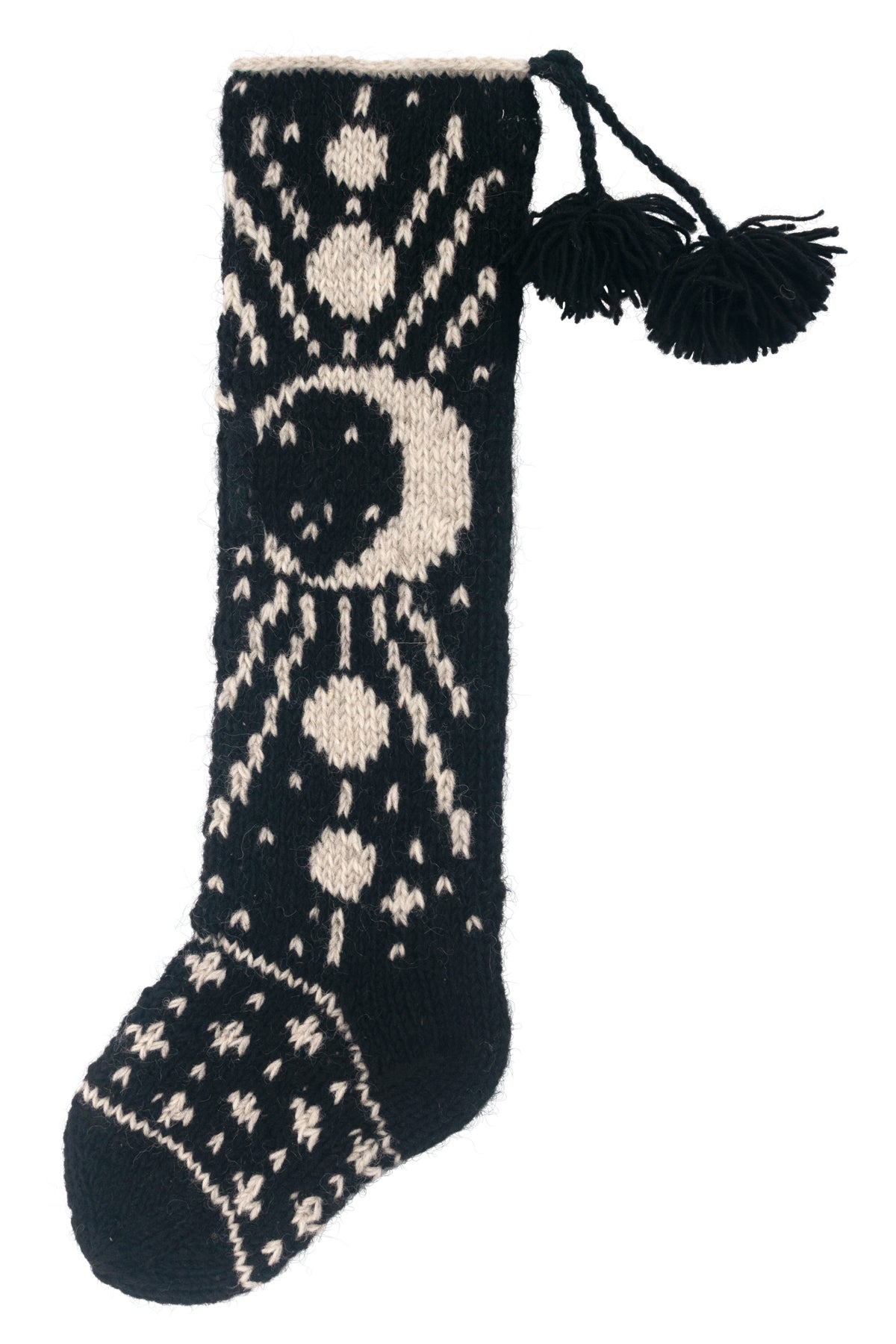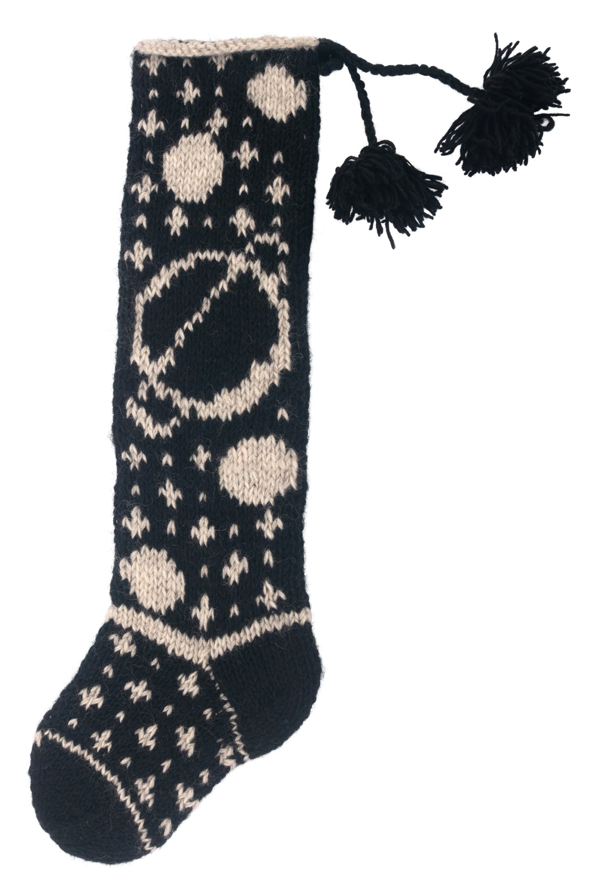 A cozy holiday stocking with playful charm. Hand-knit from 100% wool, each stocking features a bold kitty pattern in either Red or Green, finished with a tassel loop for easy hanging. Perfect for gifting or festive décor.
